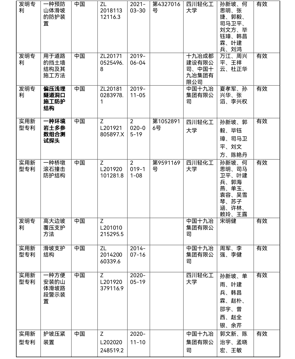 (5)項目共產(chǎn)出成果論文29篇(其中SCI論文11篇;EI論文5篇,中文核心11篇);授權(quán)發(fā)明專利7項、實用新型專利5項;編制部級施工工法1項;參編學(xué)術(shù)專著1篇,主編教材或?qū)W術(shù)專著3部。